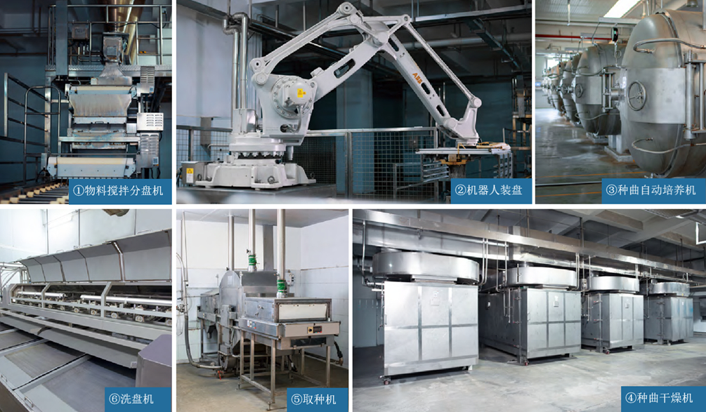 種曲培養(yǎng)生產(chǎn)線由物料攪拌、物料分盤、培養(yǎng)盤入架(機器人裝盤)、自動種曲培養(yǎng)、烘干、取種、洗盤等工序構(gòu)成。其中種曲自動培養(yǎng)機是生產(chǎn)線的核心設(shè)備,采用無菌微生物培養(yǎng)技術(shù),整個培養(yǎng)過程均處在一個密閉的環(huán)境中,并實現(xiàn)全程自動化控制,系統(tǒng)是具有原料蒸煮、滅菌、降溫、接種、培養(yǎng)等功能于一體的設(shè)備,生產(chǎn)出的菌種產(chǎn)品純度高、無雜菌、活力強、孢子豐富。本公司單獨供應自動種曲機,還具備種培養(yǎng)生產(chǎn)線全工序自動化整合能力。